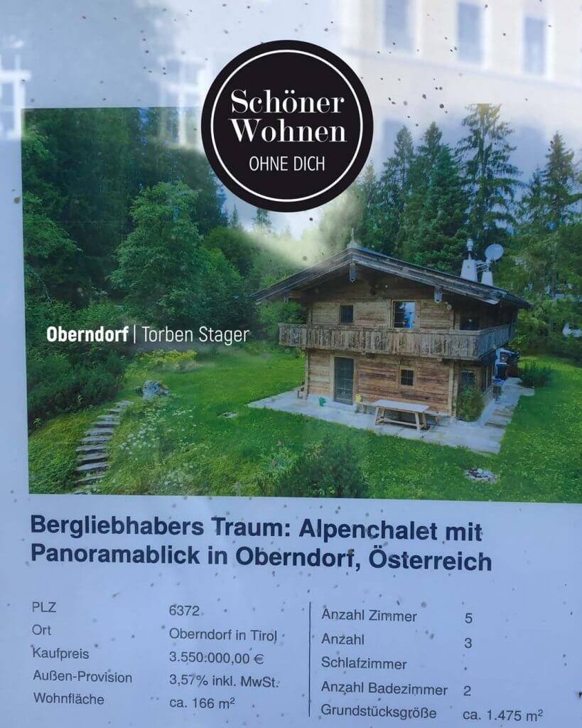 - Bergliebhabers AlpTraum…Oberndorf: Eine Holzhütte mit Wiese für schlappe 3.550.000 € ist wahrscheinlich vor allen für die Person, welche die „Außen-Provision“ einstreichen… Bergliebhabers AlpTraum… weiterlesen
