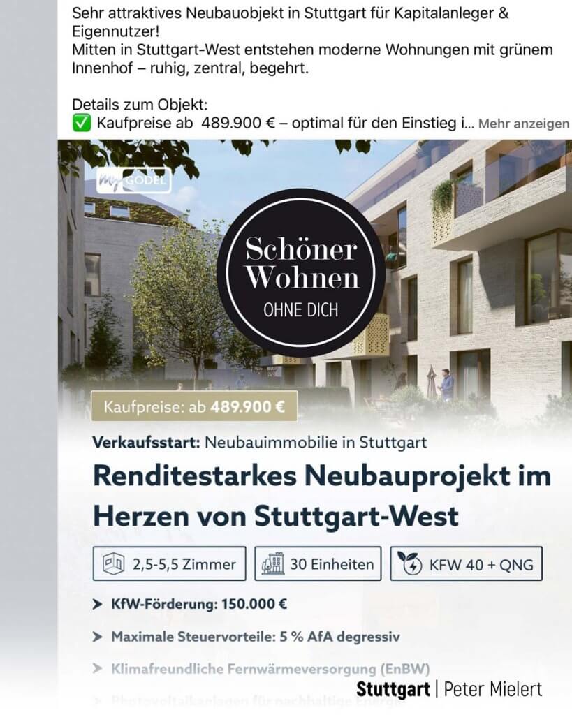 Traumrenditen und maximale Wertschöpfung, selbst auf dem umkämpften Mietwohnmarkt, geht einfach deutlich besser OHNE DICH. Solides Wohnen in Bestlage, die effektvolle Vermarktung und Verwertung von attraktivsten Regionen geht am effektivsten zukünftig OHNE DICH.